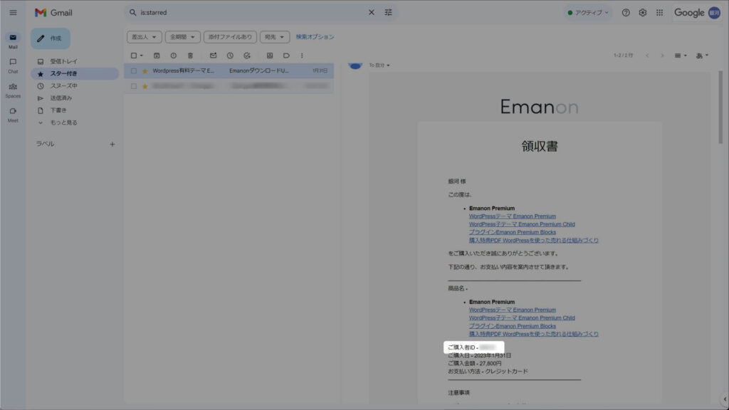 購入者IDは、Emanon Premium購入時に送られてくるメールに記載されています。これをコピーしましょう。