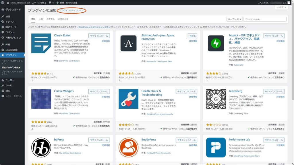 Emanon Premiumには非常に強力な専用のプラグインが用意されていますのでインストールしましょう。